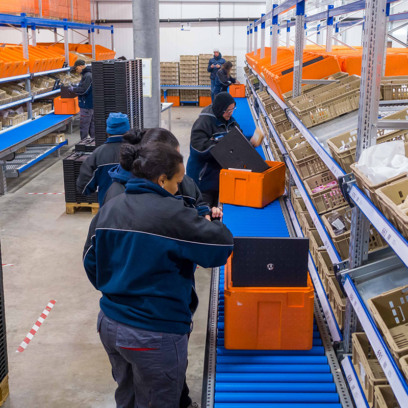 Mitarbeiter beim Kommissionieren von ultrafrischen Produkten.
